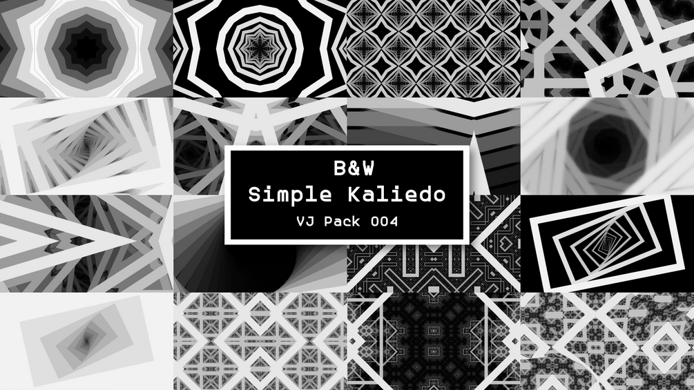 B&W Simple Kaliedo is a pack of high-quality VJ content perfect for overlays, masking, displacements and more! These clips consist of monochrome fractals and recursive patterns - great for layering or as motifs within any VJ setup. Pacing of clips works with all music genres and tempos.